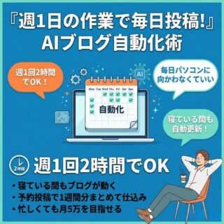 PR2026年、ブログ運営の「時間」が溶ける時代は終わった記事を書くたびにリサーチで迷子になり、構成で手が止まり、画像制作でさらに時間を失う。そんな「時間が溶けるブログ運営」は、2026年を境に終わりを迎えた。いまは発想から公開までを一気通...