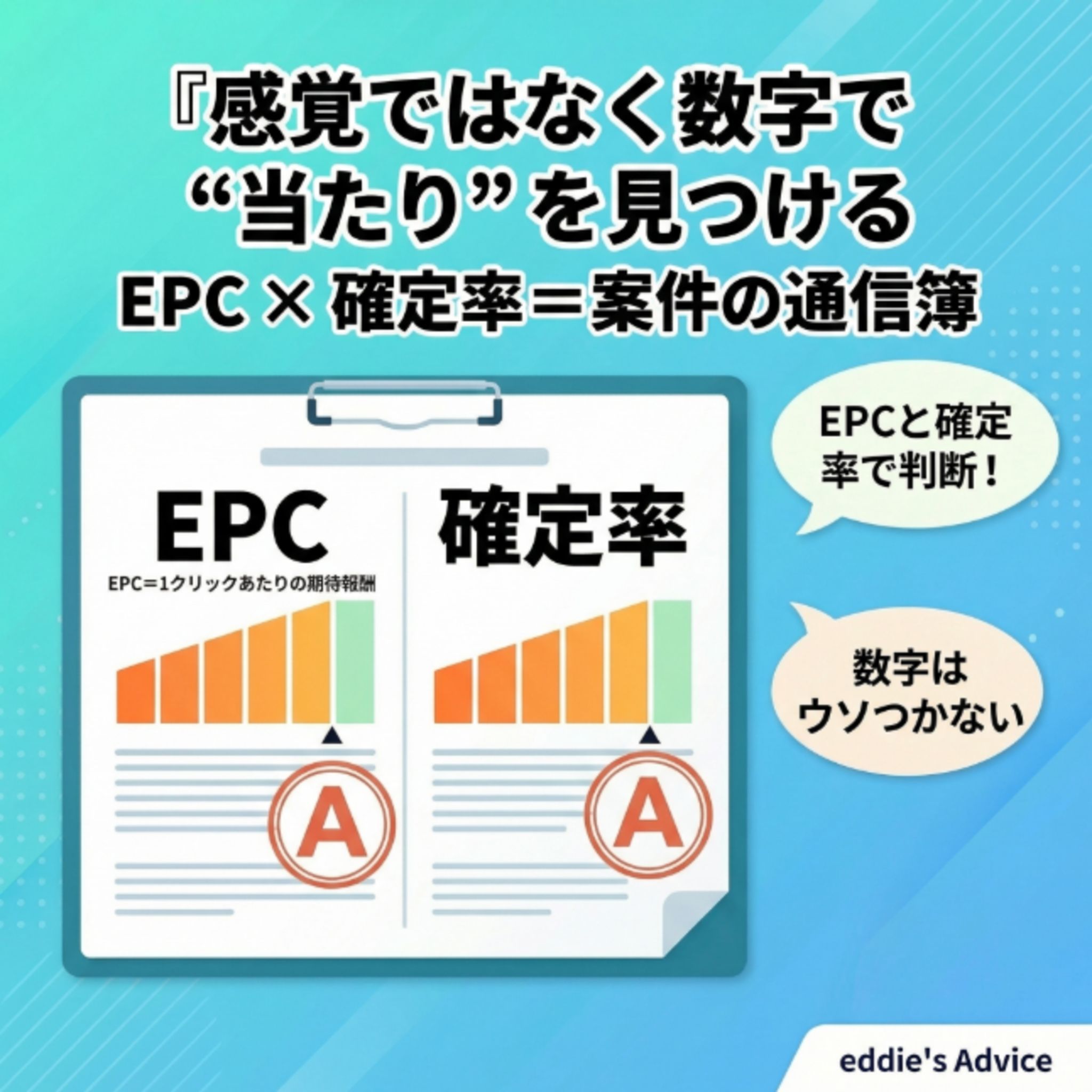 EPC × 確定率。これこそが、案件の本当の通信簿である。この二つの数字を見れば、どんなに魅力的な単価の案件も、どんなに地味に見える案件も、その本当の実力が丸裸になる。