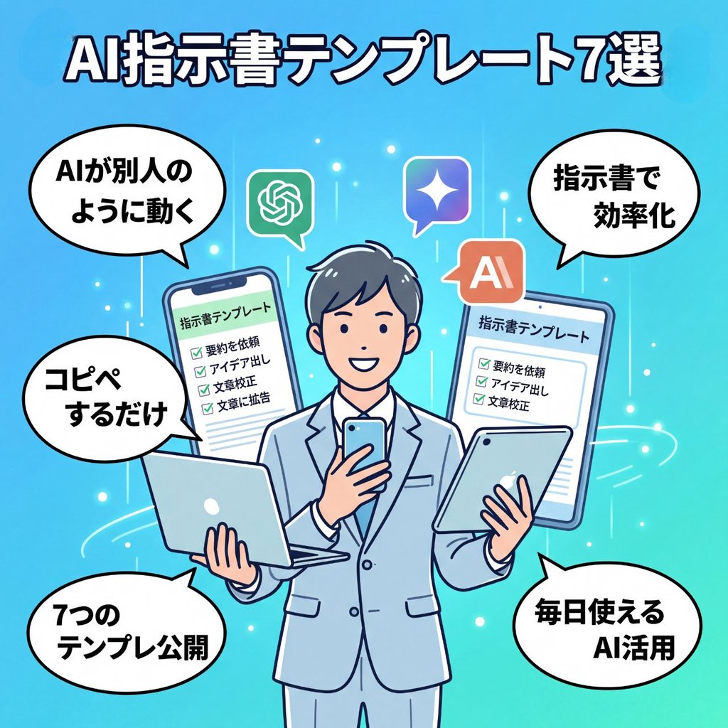 ChatGPT・Gemini・Claudeのどのサービスでも使えますし、スマホからでも簡単に活用できます。今回は、すぐに使えるコピペOKな指示書テンプレートを7つご紹介します。