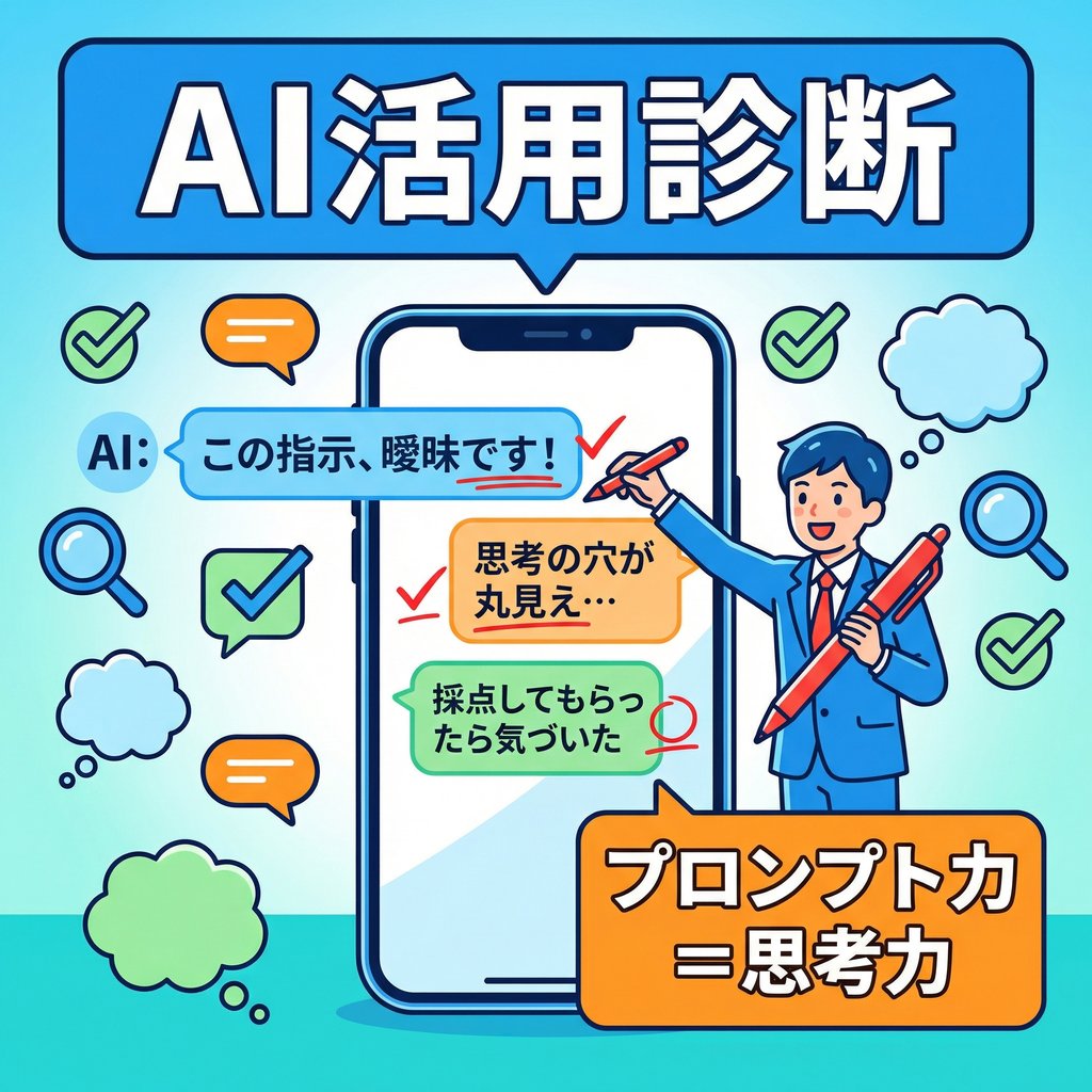 ではどうするか。答えはシンプルです。AIに採点してもらえばいいのです。自分の対話ログをそのまま貼り付け、「この指示の曖昧な点を指摘してください」と依頼する。それだけで、気づけなかった思考の漏れが一気に可視化されます。