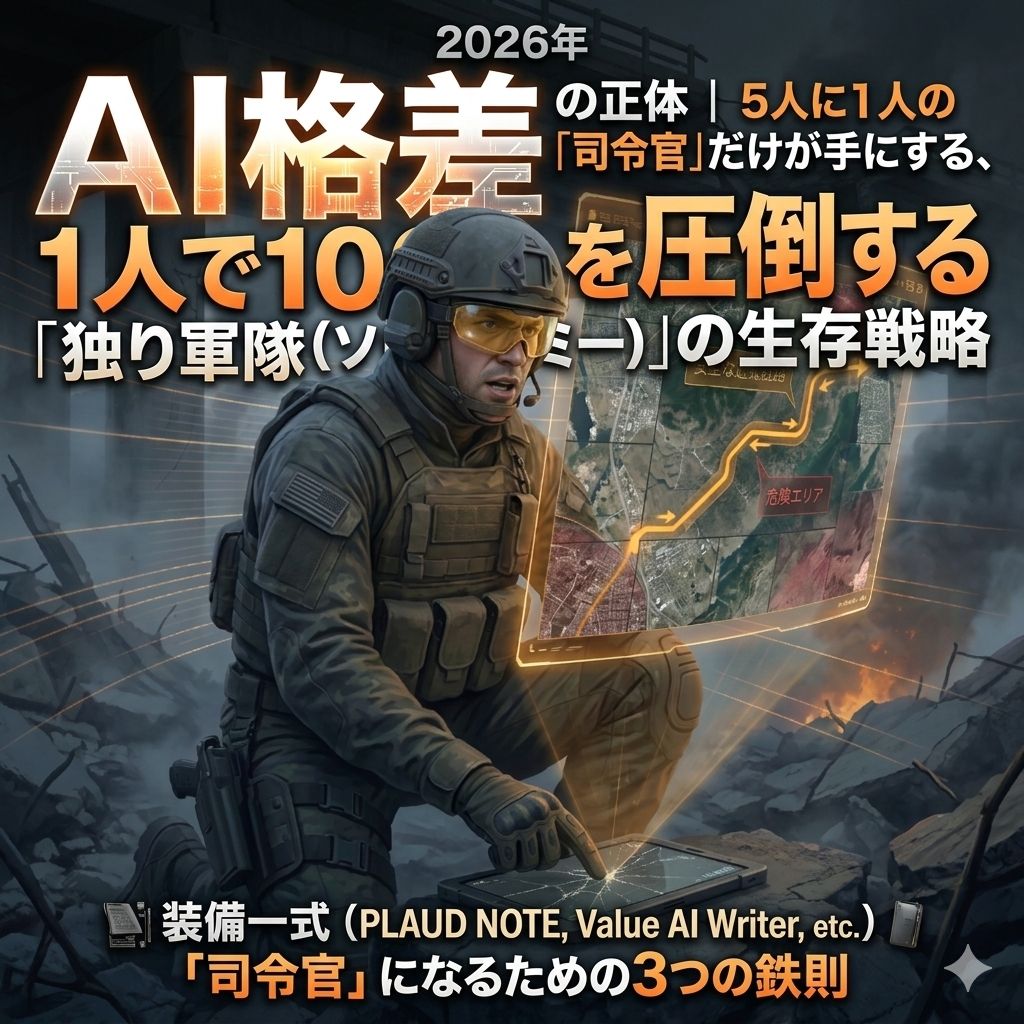 2026年のAI格差は、能力ではなく気づきの差です。同じAIを使っても、兵士は自分の作業を少し速くし、司令官はAIに軍隊を作らせます。この差は、年単位で巨大な差になります。