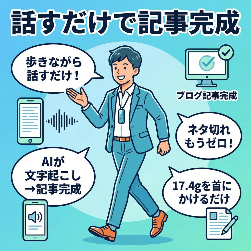 ブログが続かない最大の理由は「ネタを意識的に考えなければならない」というプレッシャーだ。しかしPLAUD NotePin Sを常に身につける習慣を作れば、日常生活のすべてがネタの源泉になる。