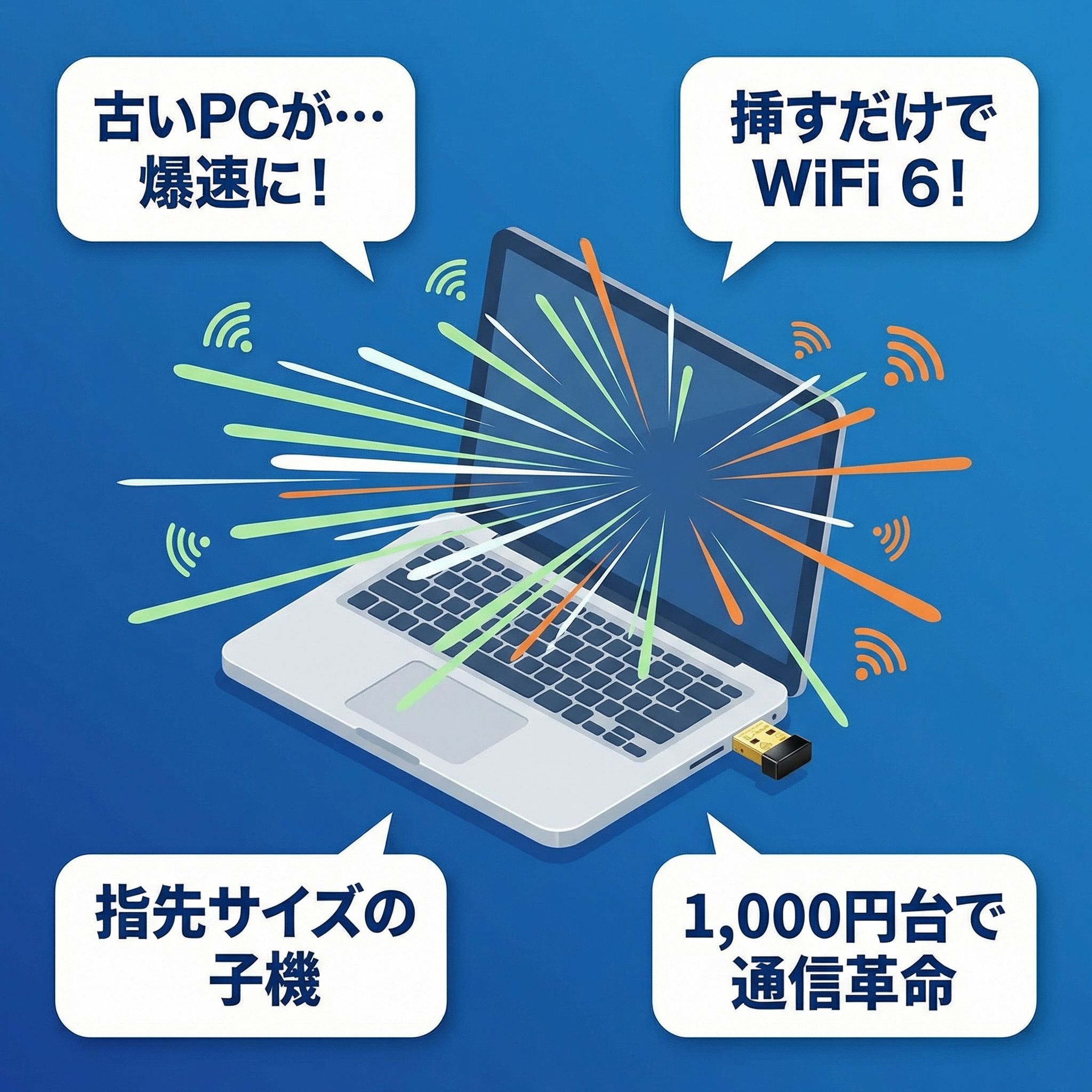 そんな悩みを、たった1,000円台で一瞬で解決してしまう小さな救世主が、TP-LinkのUSB WiFi子機「Archer TX1U Nano / A」です。見た目は指先サイズ。しかし中身は最新規格WiFi 6対応という、まさに“コスパ最強クラス”のガジェット。今回はこの超小型WiFi子機が、なぜ古いPCを“爆速化”させるのかを詳しくレビューしていきます。