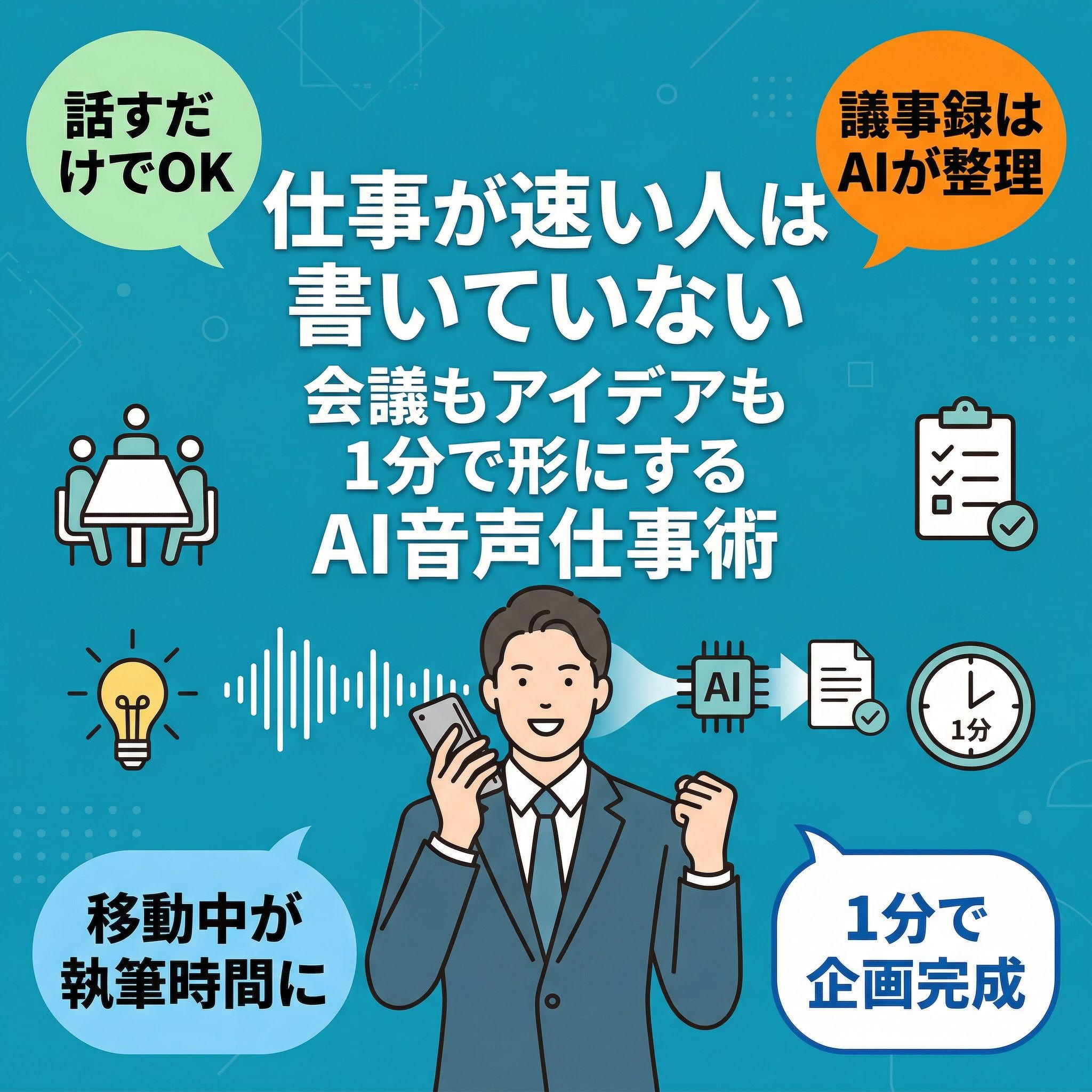 ビジネスの勝敗はスピードで決まります。話すことは、打つことより速い。録ることは、覚えることより正確です。今日から始めてください。完璧な文章を書くことではなく、まず話すことを。その瞬間から、あなたの時間の使い方は変わります。成果も、確実に変わります。