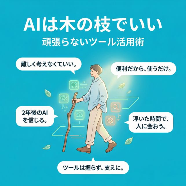 AIは凄い技術ではなく、道に落ちている木の枝。そう思えたとき、私たちはようやく、頑張りすぎずにテクノロジーと仲良くなれる。
