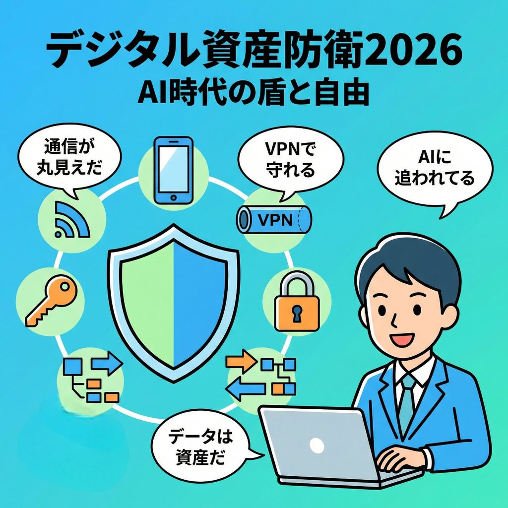 2026年、私たちのスマホやPCには、銀行情報、資産管理データ、家族写真、生成したコンテンツ、膨大なクラウドアカウントが紐づいている。それは資産であると同時に、放置すれば手に負えない「デジタルの負債」と化す。守ることは防衛であると同時に、自分のデジタル人生を整理し、身軽に生きるための作業でもある。いつでも必要なものだけを残せる状態にしておくこと。それが本当の意味での「デジタル資産管理」だ。