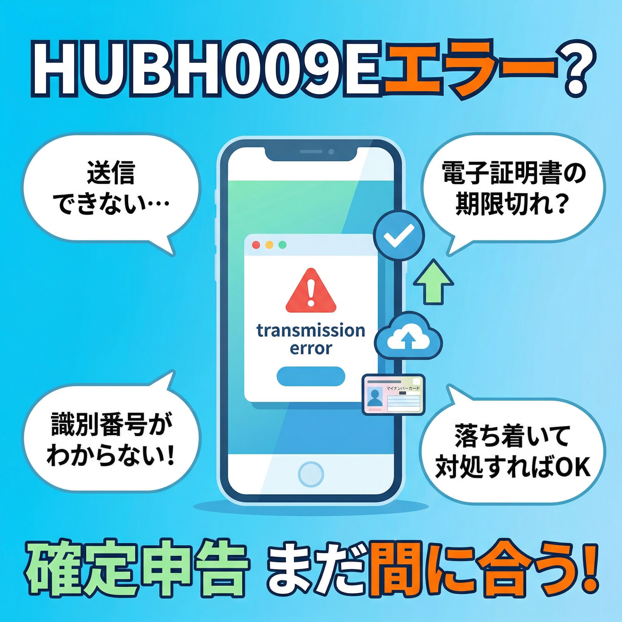 提出期限が迫っていると、冷静さを保つのも難しくなります。しかし結論からお伝えします。HUBH009Eエラーは適切な対処を行えば解消できるケースがほとんどです。