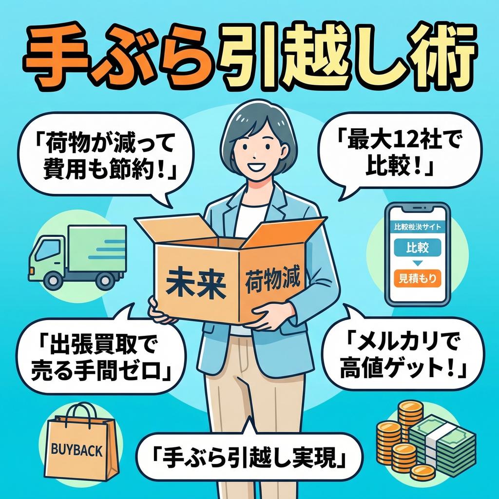 この記事では、引越し侍の一括見積もりとセカンドストリートの出張買取、そしてメルカリを組み合わせた「手ぶら引越し」の具体的な方法をお伝えします。引越し準備と断捨離を同時並行で進めることで、時間もお金も最大限に節約できる方法です。ぜひ最後まで読んで、賢い引越しを実現してください。