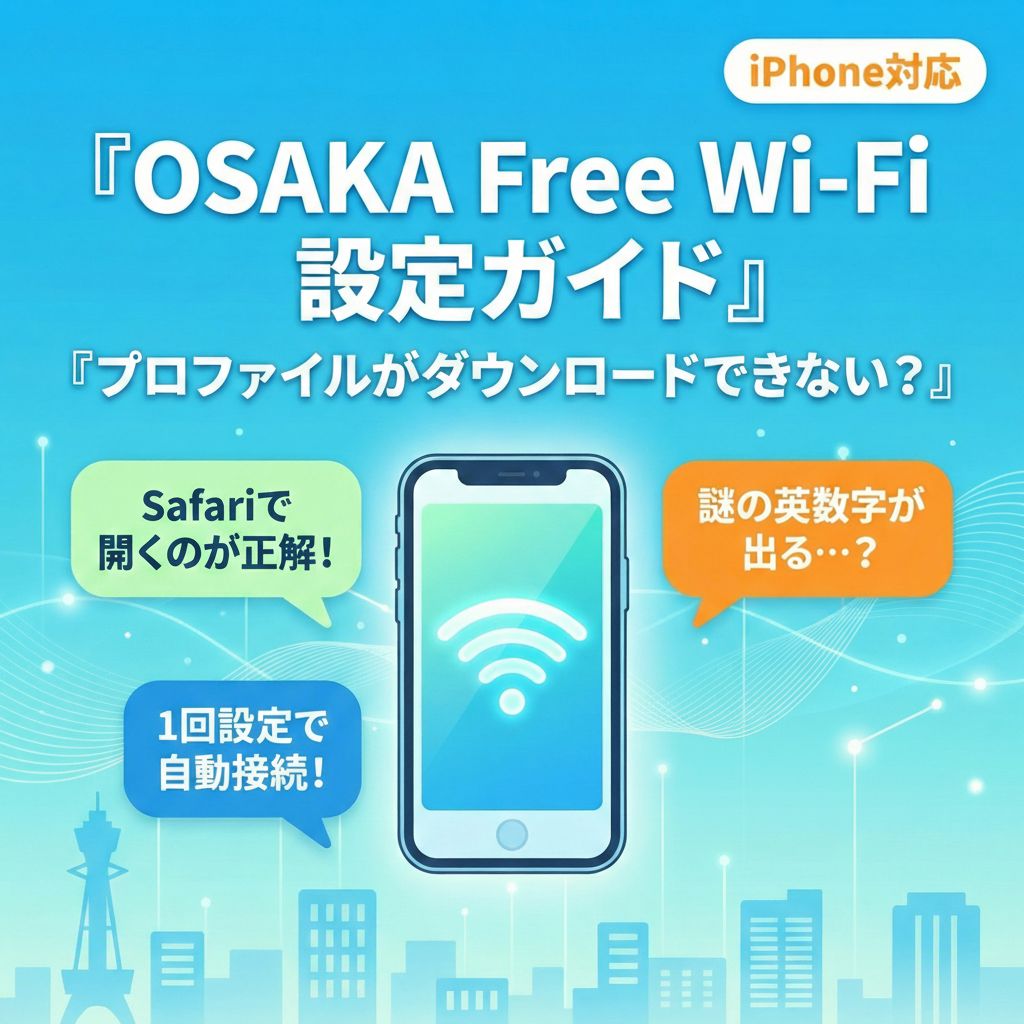 大阪の街を歩いているとき、無料のWi-Fiを探して何度もログイン画面と格闘した経験はありませんか?観光や出張で忙しいときに、毎回メールアドレスを登録したり、不安定な回線にイライラするのはもう終わりにしましょう。今、大阪で導入が進んでいる「OpenRoaming(オープンローミング)」対応の「OSAKA Free Wi-Fi」なら、一度設定するだけで、対象スポットに入った瞬間に自動で安全な通信が始まります。しかし、最新のiPhoneなどで設定しようとすると、「ダウンロードできない」「変な画面が出る」といったトラブルが多発しているのも事実です。今回は、私が実際に直面した失敗例を交えながら、確実に設定を完了させるための「Safari」を使った正攻法を詳しく解説します。この記事を読めば、あなたも今すぐスマートに大阪の街へ繰り出せるようになりますよ。