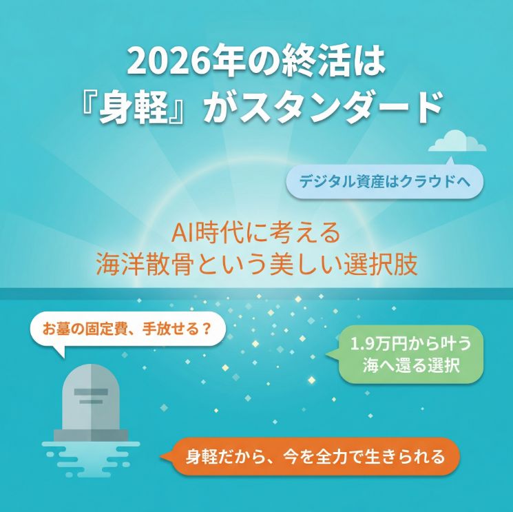 2026年、デジタル化が極まったこの時代において、私たちの本当の資産は「情報」と「思想」です。肉体は自然に還り、言葉はネットワークに残る。その構図を受け入れたとき、死は重たい終点ではなく、循環の一部になります。「散骨船長」のような誠実で低コストな選択肢は、その循環を現実のものにしてくれます。豪華さではなく、合理性と透明性を選ぶ。それは、今の生き方そのものを映す鏡です。軽やかに終わりをデザインしたあなたは、もう何にも縛られません。固定費にも、形式にも、曖昧な不安にも。だからこそ、今この瞬間を全力で生きられます。ミニマルな終わりを決めた人間こそ、最も大胆に挑戦できるのです。私はそう信じています。