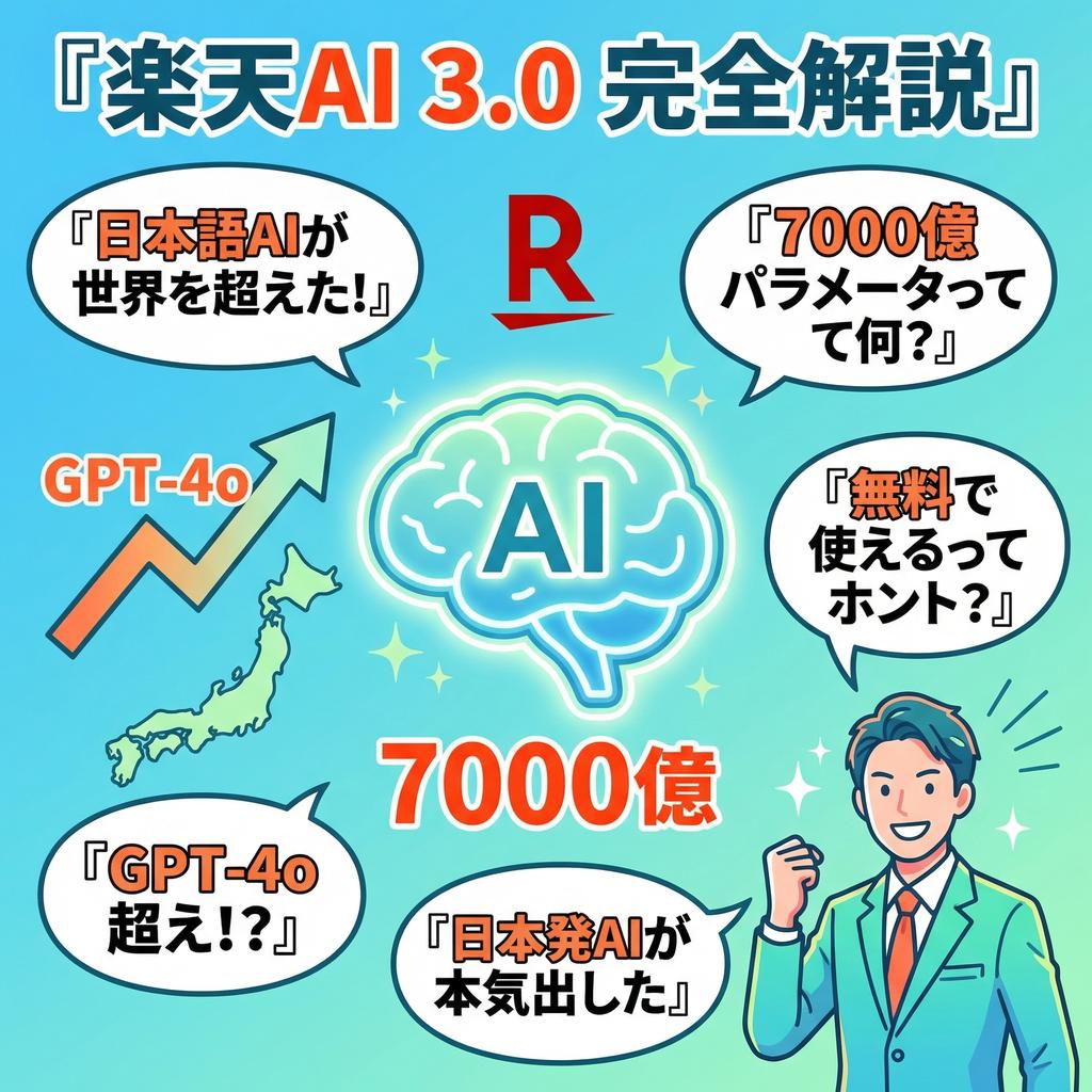 「でも、AIのニュースって難しくてよくわからない」——そう感じているあなたのために、この記事ではRakuten AI 3.0についてAI初心者にもわかりやすく、その正体・性能・私たちへの影響をまるごと解説します。