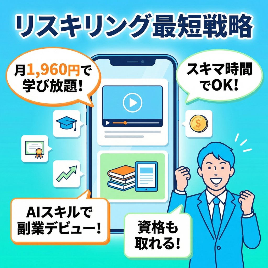 専門スクールに通えば数十万円。資格講座も一括払いで数万円はザラ。忙しい社会人が仕事後や週末に時間を捻出するのも簡単ではありません。そしてそもそも「どのスキルが自分に必要なのか」という問いへの答えが出せないまま、行動できずにいるケースが非常に多いのです。