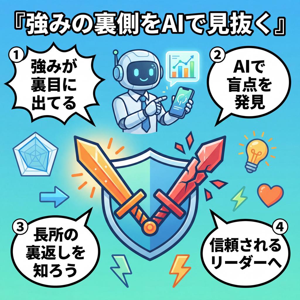 定期的にAIに「自分の強みのリスクを教えて」と聞く習慣をつけよう。それだけで、あなたの対人関係・チームワーク・リーダーシップは、確実に変わっていく。