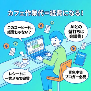 AIブログ収益化 カフェでAIと壁打ちしたコーヒー代は経費になる?青色申告ブロガーが知っておきたい会議費の正しい使い方 PRカフェのカウンター席でノートPCを開き、ChatGPTやClaudeに話しかけながら記事の構成を練る。そんな作業風景が、今やブロガーにとって当たり前の日常になってきた。ふと思う。「このコーヒー代、経費にしていいのかな?」結論から言おう。... 2026.03.25 AIブログ収益化