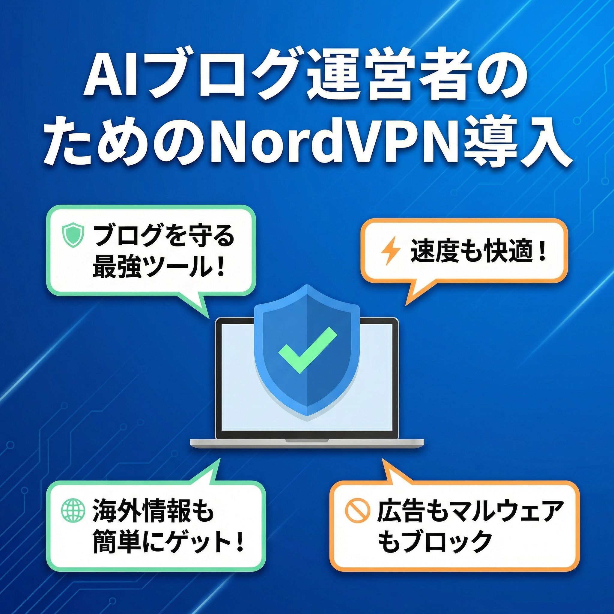 まとめ:NordVPNはAIブログ運営者に不可欠なセキュリティツールであり、速度、情報保護、海外情報取得、脅威対策、長期コスト削減の全てを兼ね備えています。
