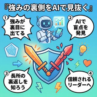 AI活用・ツール術 あなたの「強み」が武器になるとき、凶器になるとき|AIで「長所の裏返し」を分析する方法 PRあなたの「自信」、相手には「圧」に見えていないか?仕事で成果を出してきた自信、積み重ねてきた経験、周囲からも認められてきたはずの強み。それなのに、なぜか人間関係がうまくいかない。チームの空気が重くなる。部下が萎縮している気がする。思い当... 2026.03.28 AI活用・ツール術
