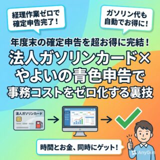 AI活用・ツール術 年度末の確定申告を「超お得」に完結!法人ガソリンカード×やよいの青色申告で事務コストをゼロ化する裏技 年度末の確定申告を「超お得」に完結!法人ガソリンカード×やよいの青色申告で事務コストをゼロ化する裏技年度末が近づき、確定申告の準備に追われていませんか?本日は2026年2月12日、申告期限も迫る今こそ、ただ領収書をまとめるだけではなく「賢く... 2026.02.12 AI活用・ツール術