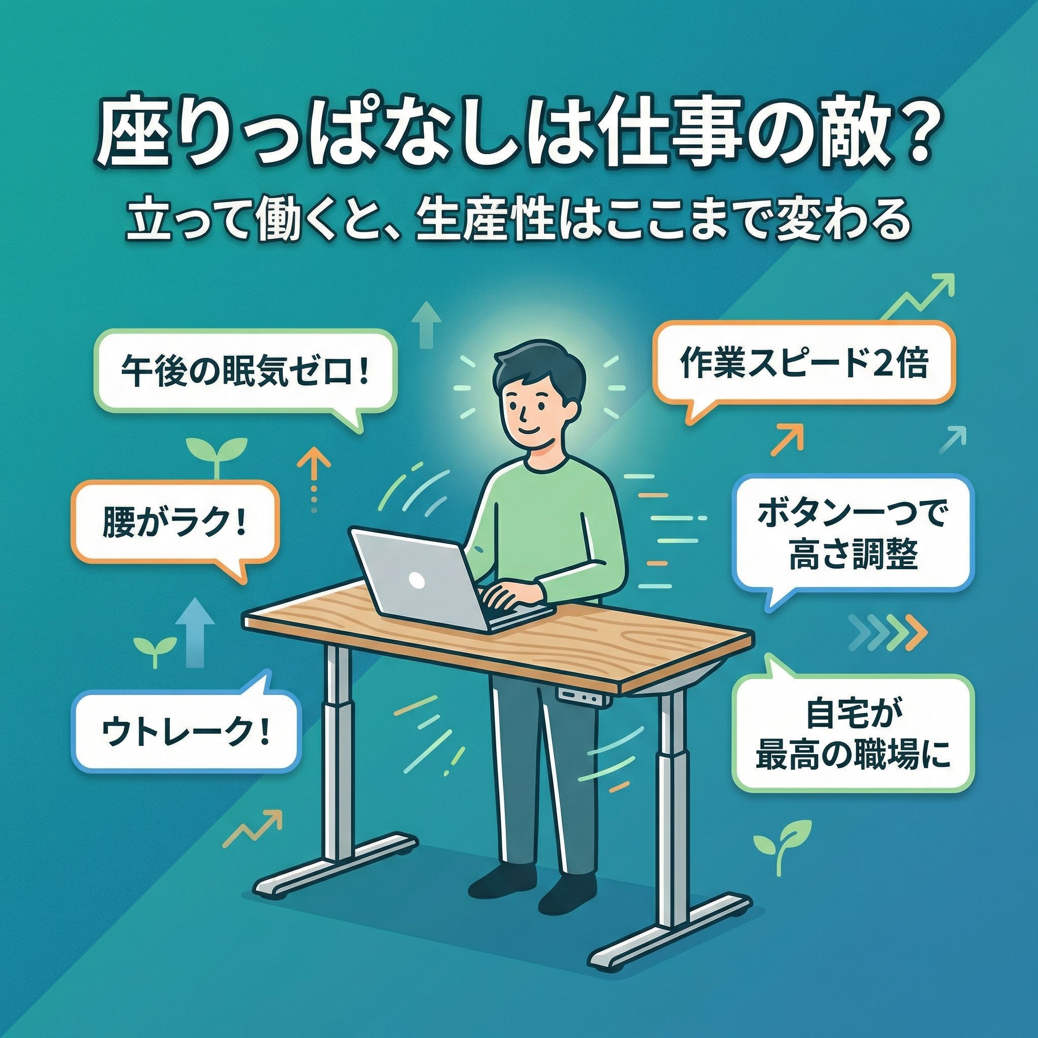 FlexiSpotを実際に暮らしの中に置いてみて、最初に感じるのは「便利」ではなく「これが当たり前だったらよかったのに」という感覚です。一度この快適さを体験すると、固定された高さの机に長時間向かうことが、どれだけ体に無理をさせていたのかに気づかされます。これはガジェットの進化というより、生活インフラの進化に近い感覚です。