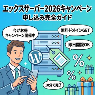 ブログ運営の基盤 エックスサーバー2026年最新キャンペーンを徹底解説!申し込みから初期設定まで初心者でも迷わない完全ガイド PR今すぐ申し込むべき?2026年エックスサーバーのキャンペーンを正直に解説「エックスサーバーって今キャンペーン中なの?」「本当にお得なの?」——ブログを始めようと思い立ったとき、こんな疑問が頭をよぎる人は多い。答えから言おう。2026年4... 2026.04.09 ブログ運営の基盤