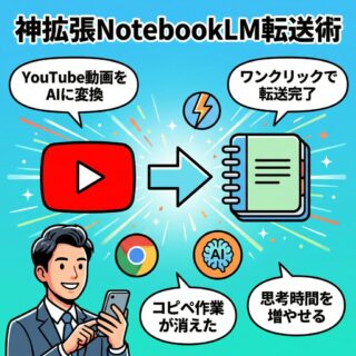 PRあなたは今日も、気になるYouTube動画を見つけるたびに、URLをコピーしてNotebookLMを開いて、ソース追加ボタンを押して……という作業を繰り返していないだろうか。情報収集の本番は「見つけた後」のはずなのに、気づけばコピペ作業...