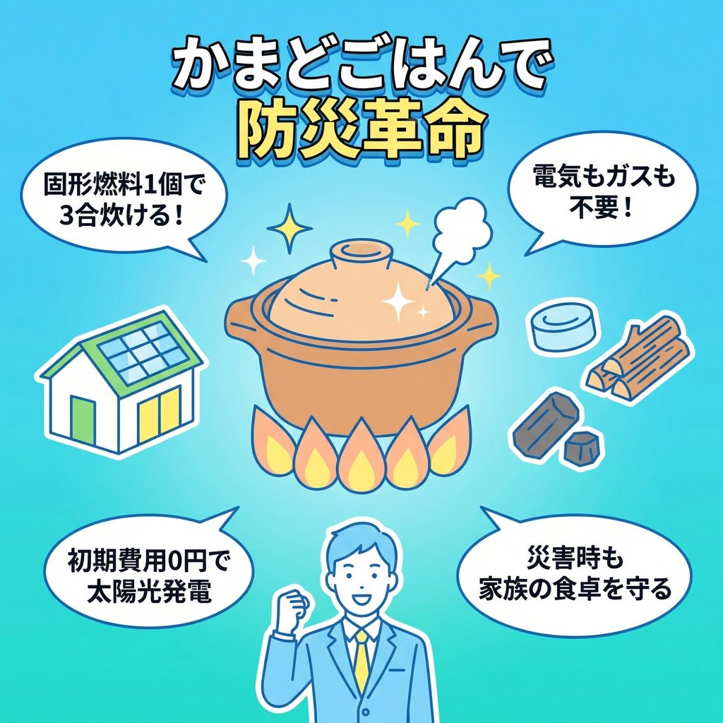 エコあっぷの太陽光発電で電力を自家生産する仕組みを整え、魔法のかまどごはんで火と食を自力でまかなえる環境を作る。この2つを組み合わせることで、あなたの家は災害に強い「自立した拠点」に生まれ変わります。