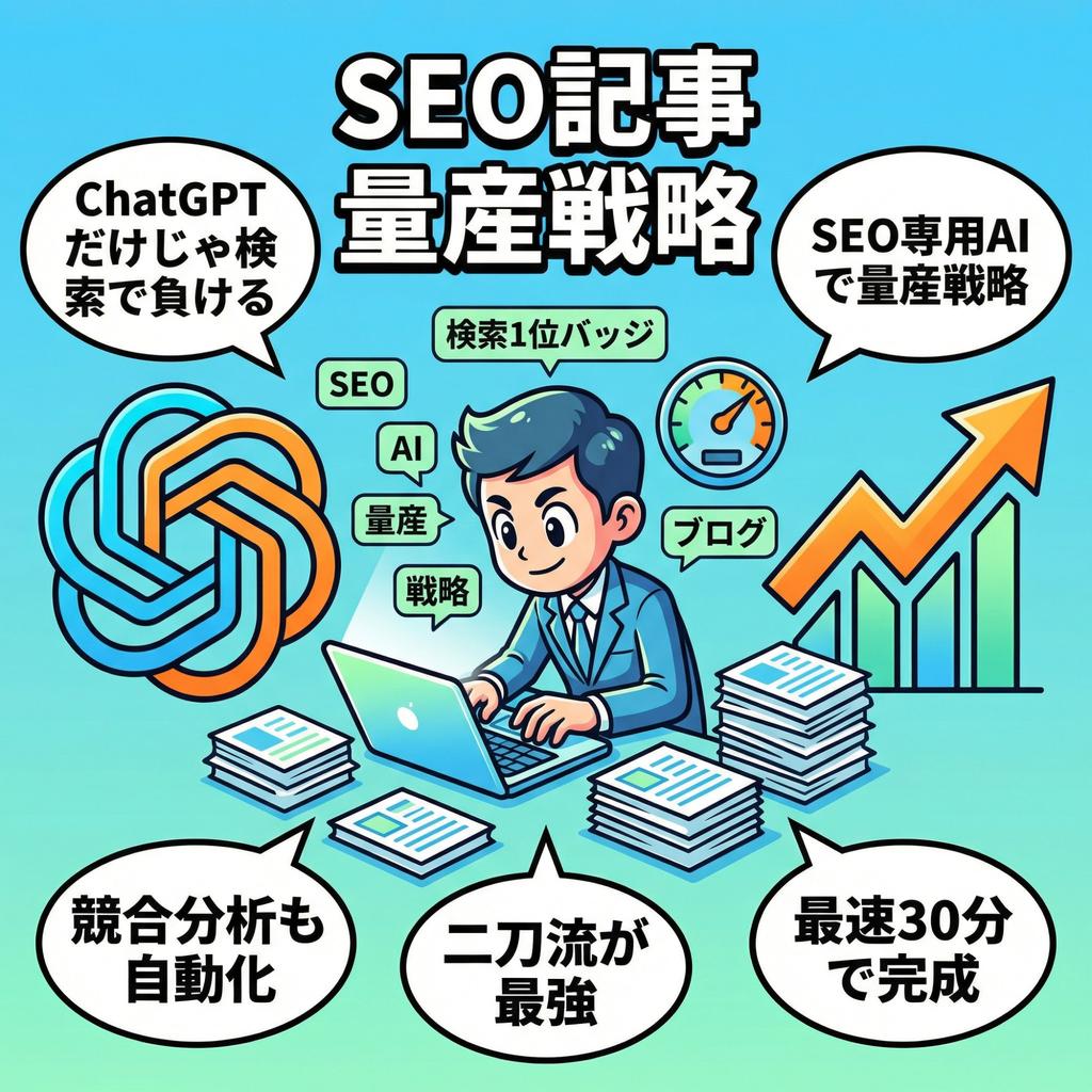 ChatGPTは優れたツールだが、SEO記事の量産に特化したツールではない。汎用性の高さゆえに、SEO特有のプロセス(競合分析・構成最適化・キーワード設計)が自動化されておらず、そのギャップを人間が埋めるためのコストが膨大になる。