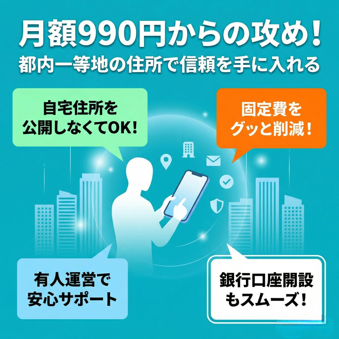 挑戦には不安がつきものだ。しかしリスクは設計次第で小さくできる。都内一等地の住所を月額990円から利用でき、有人運営による安心感と実務サポートまで得られる環境があるなら、それは行動しない理由より、行動する理由の方が明らかに大きい。