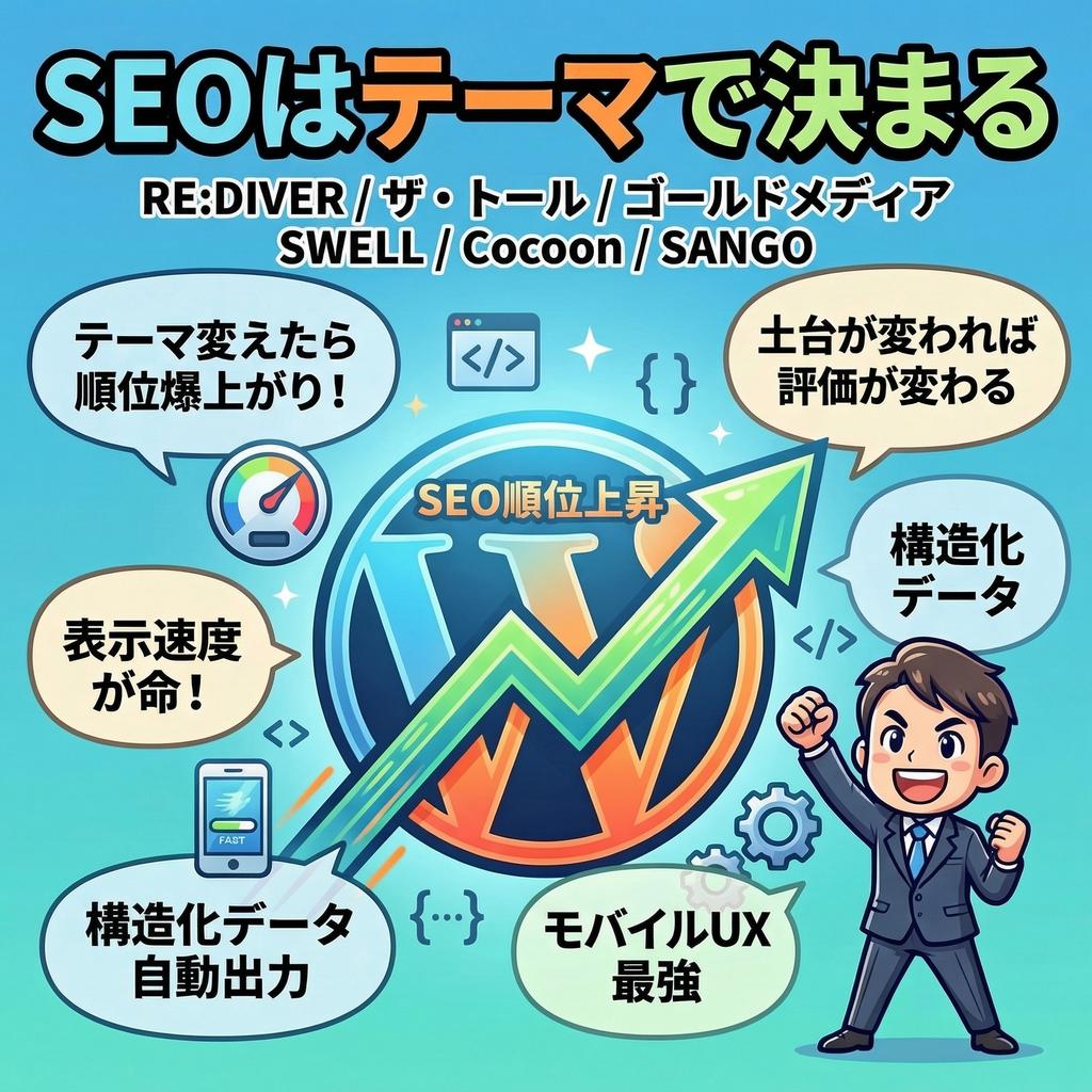WordPressテーマはブログのSEOにおける最重要の土台だ。表示速度・構造化データ・モバイルUXというGoogleが重視する3つの要素を、テーマは一手に担っている。