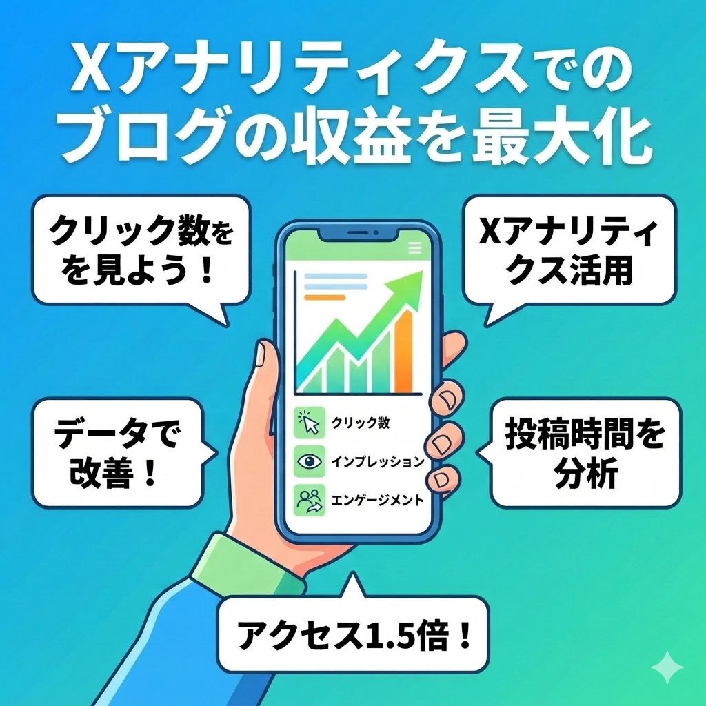 そして忘れないでください。X運用で成果を出す人は、特別な才能を持っているわけではありません。違いはただ一つ、データを見て改善しているかどうかです。今日アナリティクスを開くかどうか。その小さな行動が、1ヶ月後のブログアクセス、転送、そして収益を大きく変えることになります。今すぐXのアナリティクスを開き、あなたの投稿の数字を確認してみてください。そこには、次に伸びるヒントが必ず隠れています。